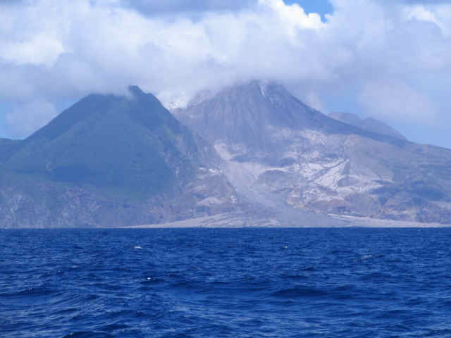 Our trip to the Caribbean started off from Guadeloupe to Isle de Saintes, with a sail by of the volcano on Montserat, and on to Antigua.  This first picture is an arial view of the western slope of Monserat's once capital city that was wiped out in the 1999 eruption that killed 17 people and the lava flow was clocked at 80 miles an hour (per the National Geographic Channel).  You will see several other shots in the slideshow of the islands south and eastern slopes as well as the steam coming up from the volcano.